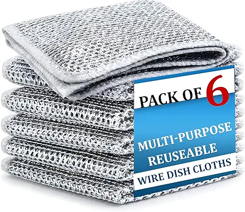 + Free ShippingDALUCI 6 Pcs Non-Scratch Steel Wire Dishwashing Cloth | Heavy-Duty Scrubber for Utensils, Dishes & Kitchen Cleaning | Reusable & Durable Cleaning Cloth for Sink & Countertops